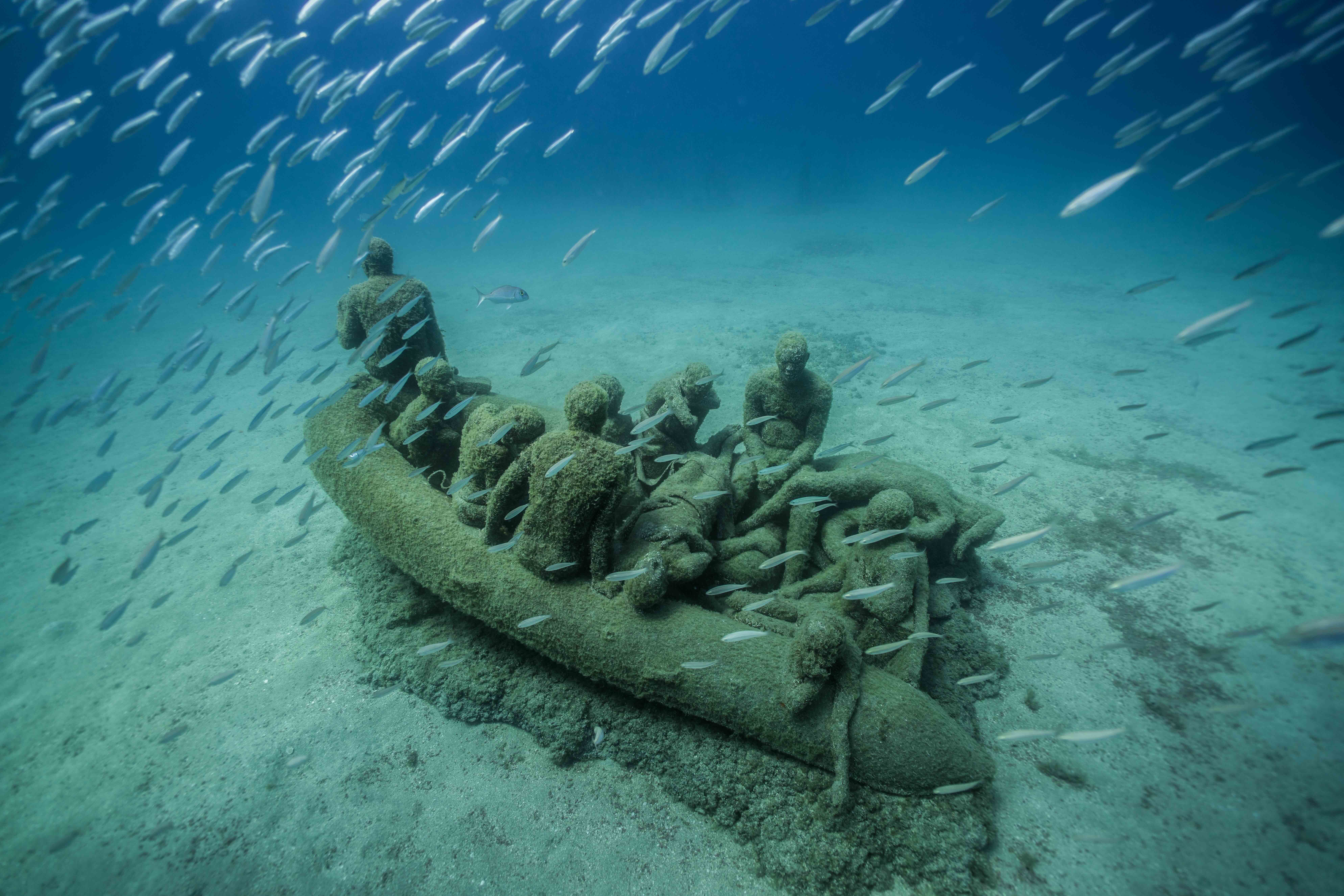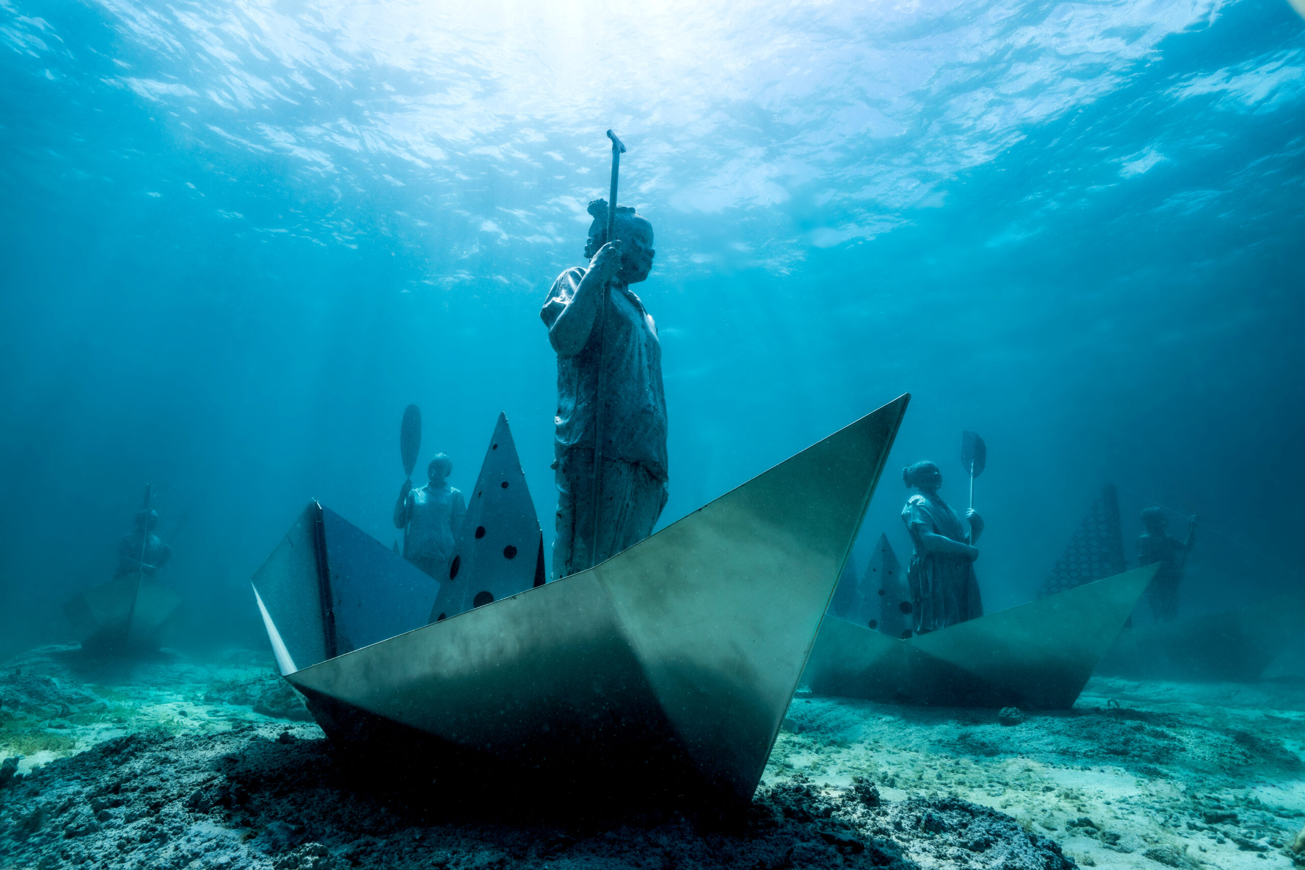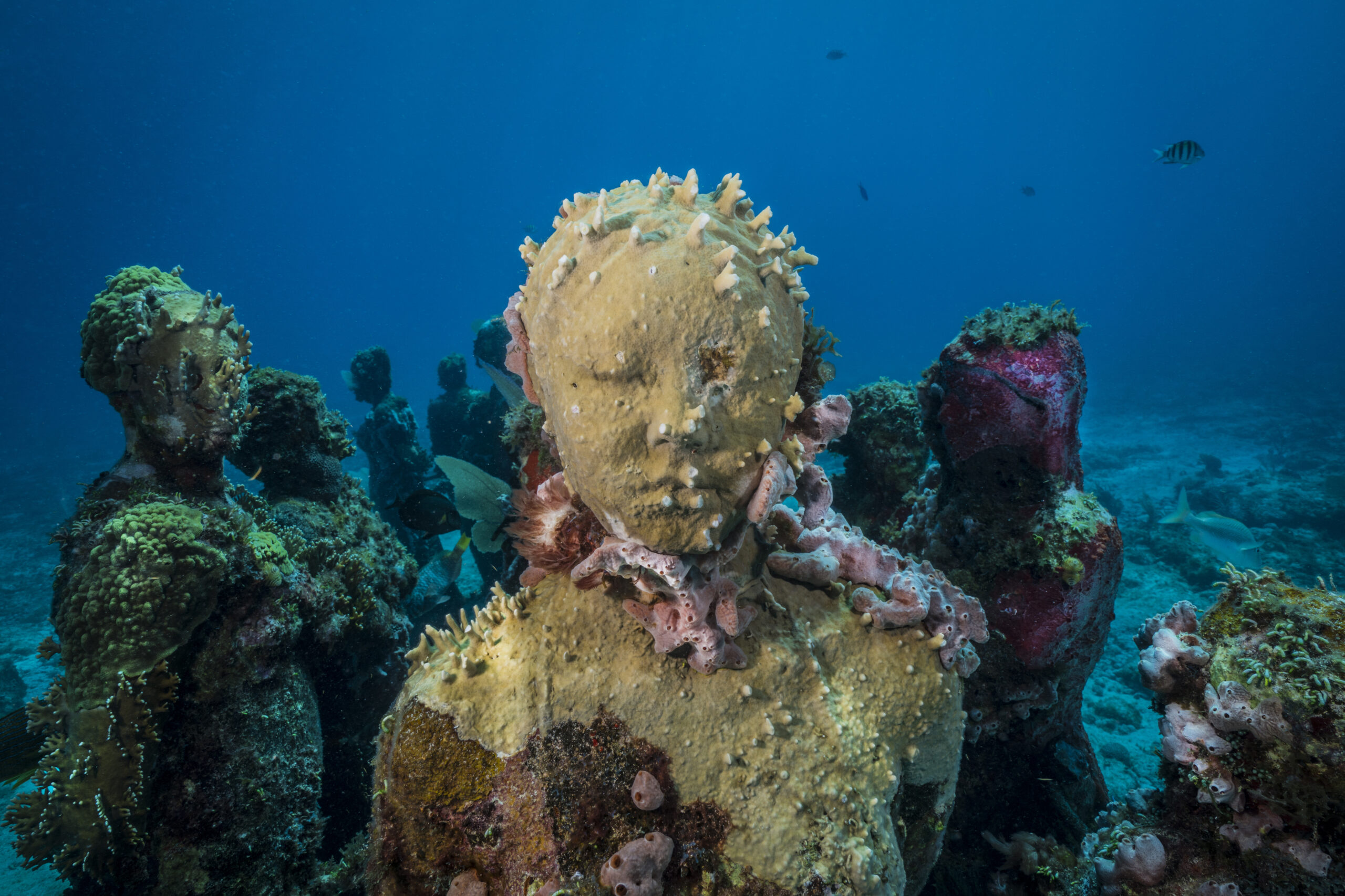 Peu d'artistes poussent leur collaboration créative avec l'eau aussi loin que Jason deCaires Taylor. En contradiction directe avec la conception d'une œuvre d'art comme une création immuable qui appartient à un environnement soigneusement contrôlé derrière des vitres et des cordons de velours dans un musée, deCaires Taylor choisit de sculpter des œuvres destinées non seulement à être modifiées, mais aussi transfigurées et même animées par les courants océaniques et la vie marine. Ses musées sont situés sur les fonds marins, témoins vivants du passage éphémère de l'humanité. Ses œuvres s'étendent à travers le globe ; ses œuvres contiennent des multitudes.