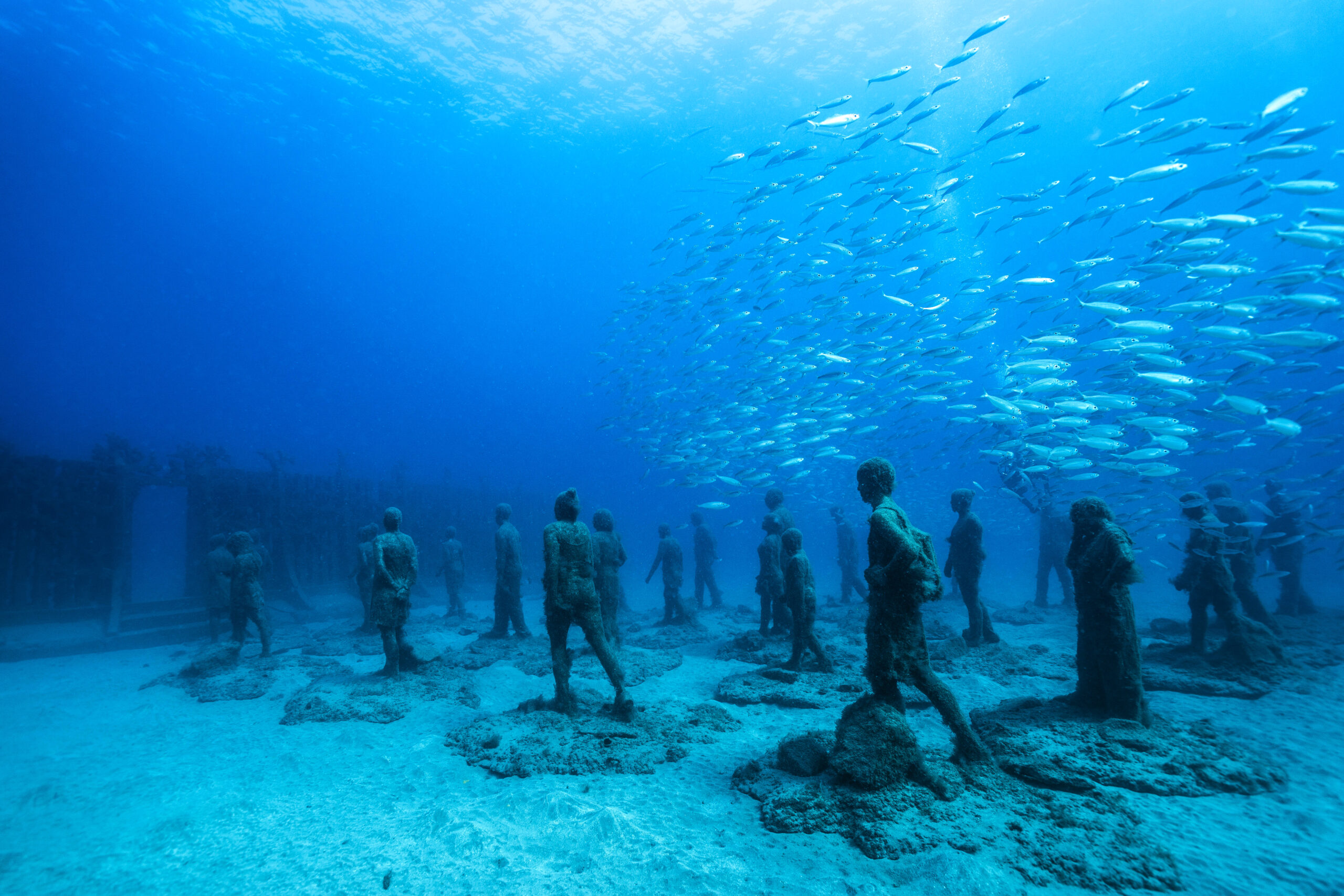 Peu d'artistes poussent leur collaboration créative avec l'eau aussi loin que Jason deCaires Taylor. En contradiction directe avec la conception d'une œuvre d'art comme une création immuable qui appartient à un environnement soigneusement contrôlé derrière des vitres et des cordons de velours dans un musée, deCaires Taylor choisit de sculpter des œuvres destinées non seulement à être modifiées, mais aussi transfigurées et même animées par les courants océaniques et la vie marine. Ses musées sont situés sur les fonds marins, témoins vivants du passage éphémère de l'humanité. Ses œuvres s'étendent à travers le globe ; ses œuvres contiennent des multitudes.