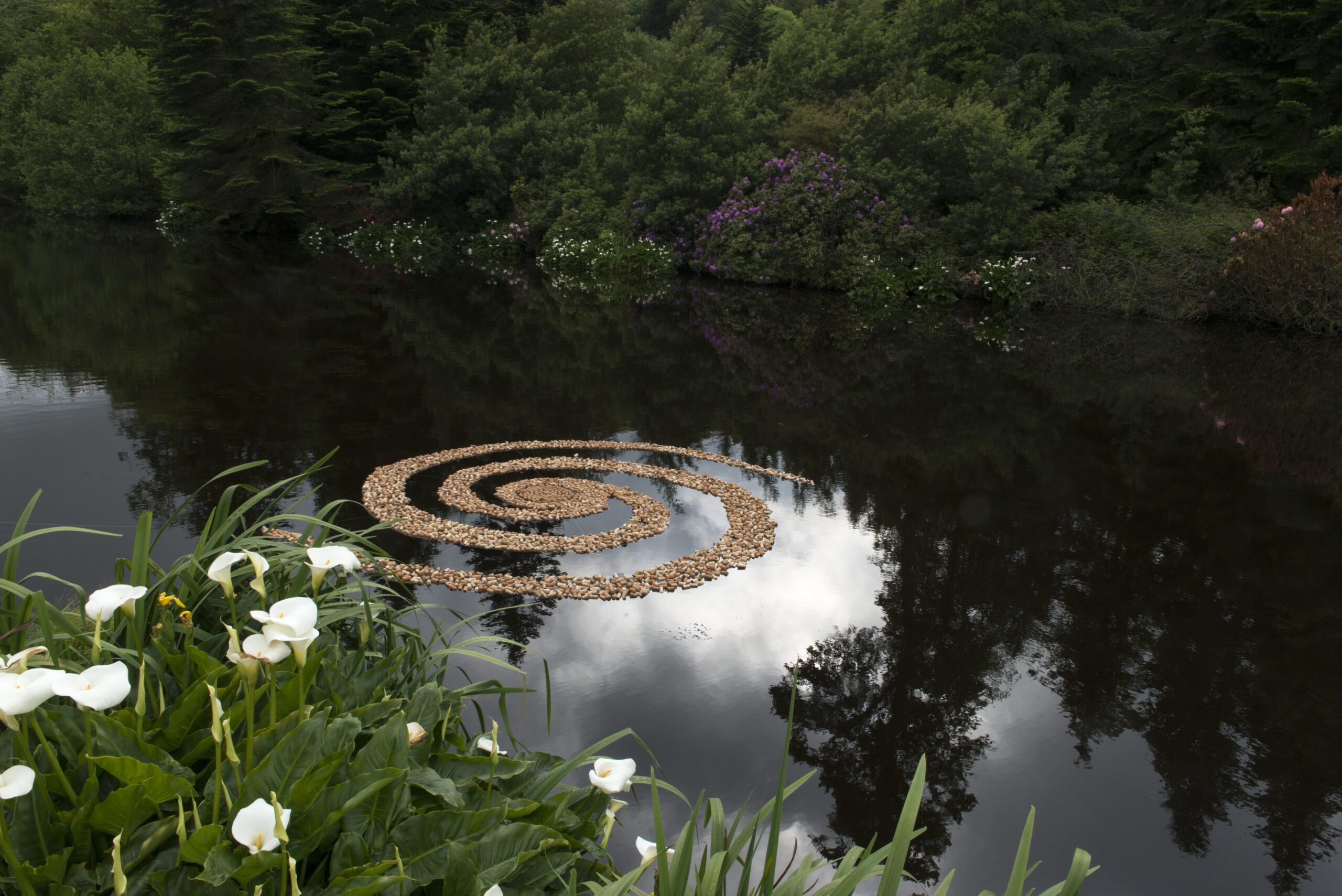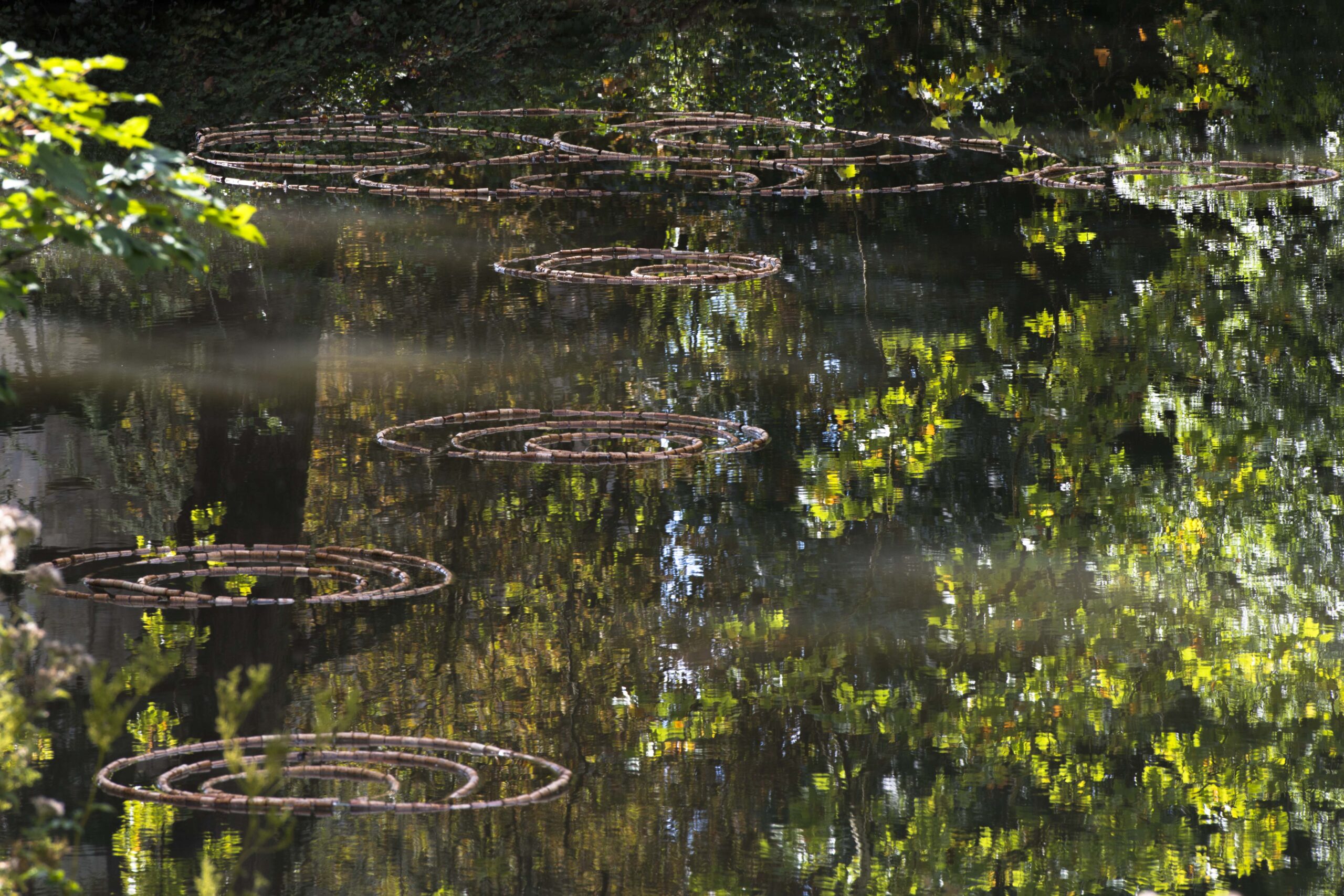 Through her aquatic mandalas, Perrine investigates water’s capacity to receive, retain, and transmit environmental influences. Her installations are conceived as gentle offerings that reveal rather than disturb natural sites, inviting a renewed sense of belonging to the living world and encouraging more inclusive and respectful ways of inhabiting the Earth.