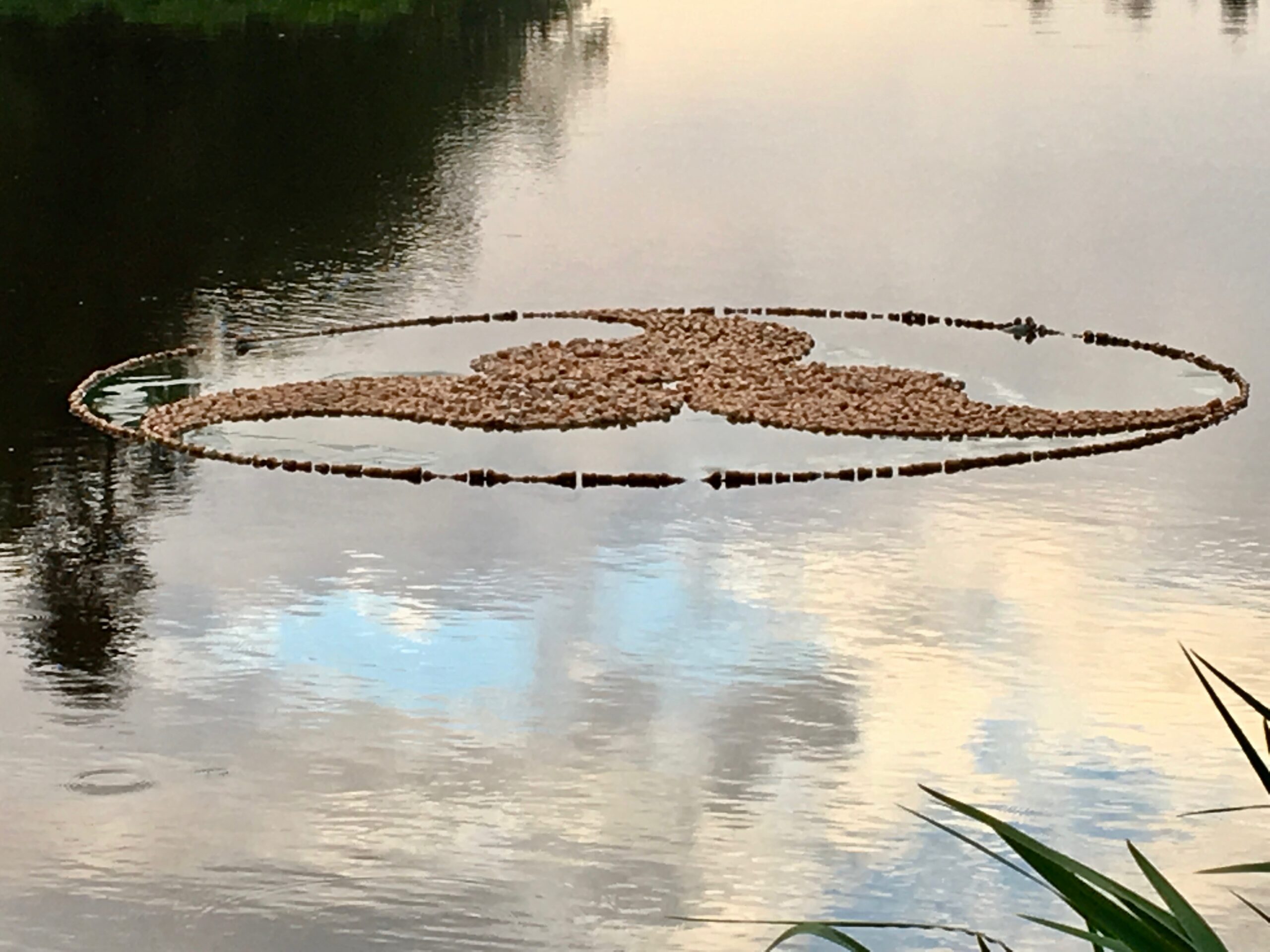 Perrine Angly is a French visual artist whose work explores the symbolic, sensory, and memory-based dimensions of water. After an artist residency on Vancouver Island in 2009, where she collaborated with Victor Reece, she felt called to create ephemeral, archetypal forms placed directly on the surface of water.